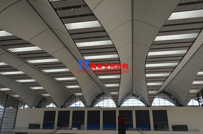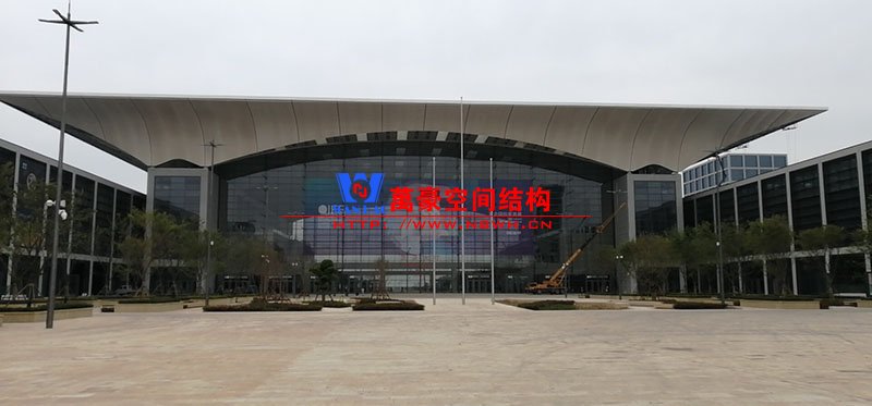 青島紅島國際會議中心幕墻膜結構工程,由寧波萬豪空間結構工程有限公司承建,現場測量、深化設計、制作及安裝由寧波萬豪全權負責。該工程用鋼量1000多噸,PTFE室內屋面膜結構展開面積17000多平方米,PTFE室外屋面膜結構展開面積20000多平方米。