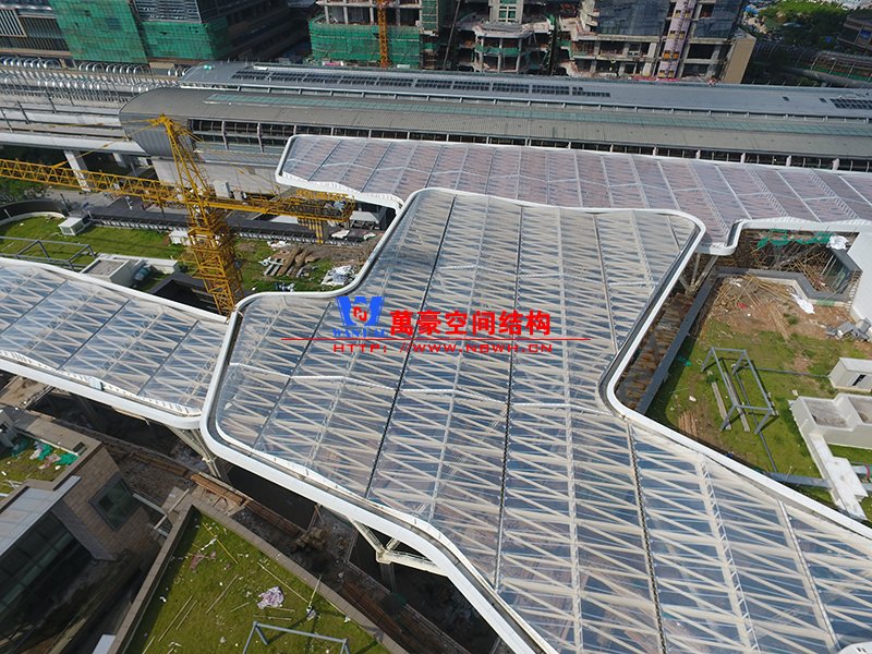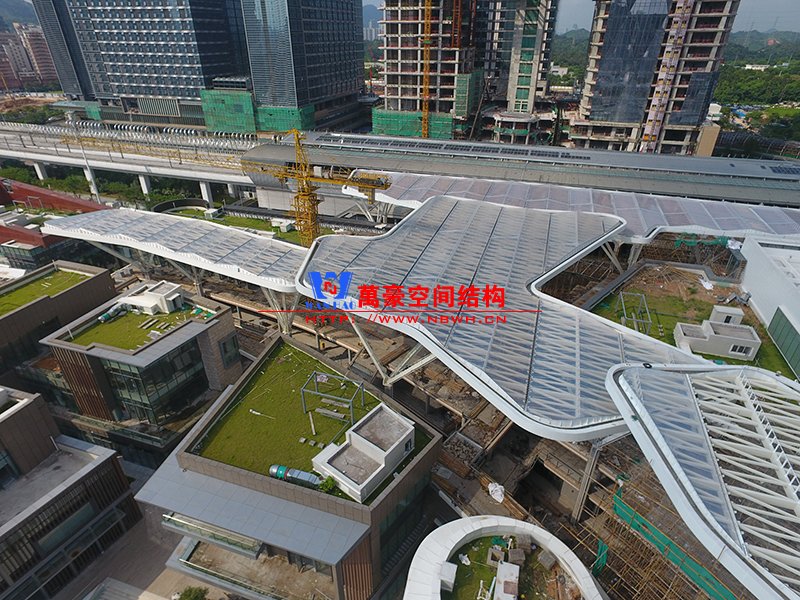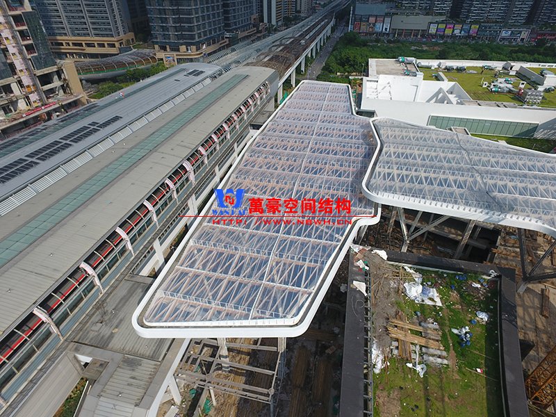 深圳龍華地鐵站ETFE膜結構天幕項目由我公司負責設計及承建,項目由4個出入口單體組成,ETFE展開面積7800平米,二次鋼結構120噸,結構落柱采用目前最流行的樹形節點支撐,在結構安全的同時更具層次感。同時該項目也完美突出了ETFE膜材高透光、高自潔性及耐高溫的優點。