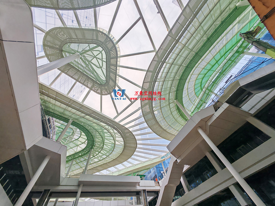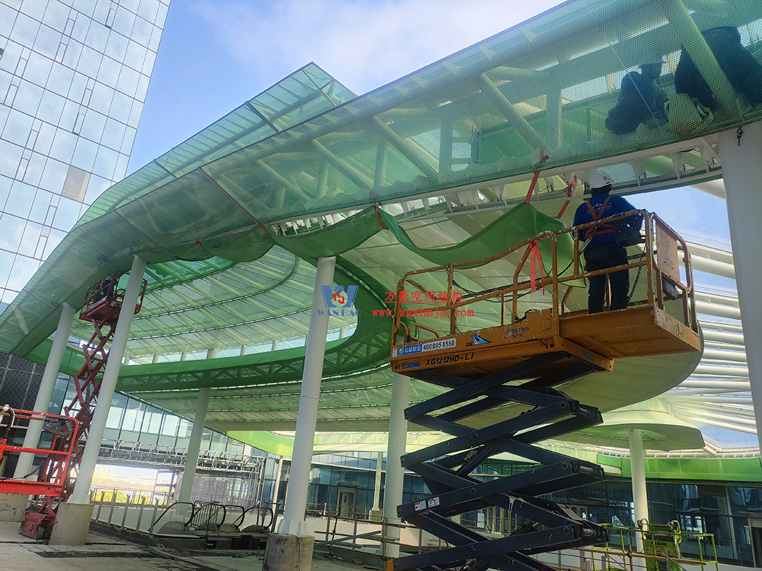 博多森谷項(xiàng)目中庭鋼膜結(jié)構(gòu)工程位于余杭區(qū)良渚板塊,地處杭州城北,良渚未來(lái)核心區(qū),城西科創(chuàng)大走廊輻射圈。該項(xiàng)目用鋼量約689噸,ETFE+網(wǎng)格織物膜展開(kāi)面積12000平方米。