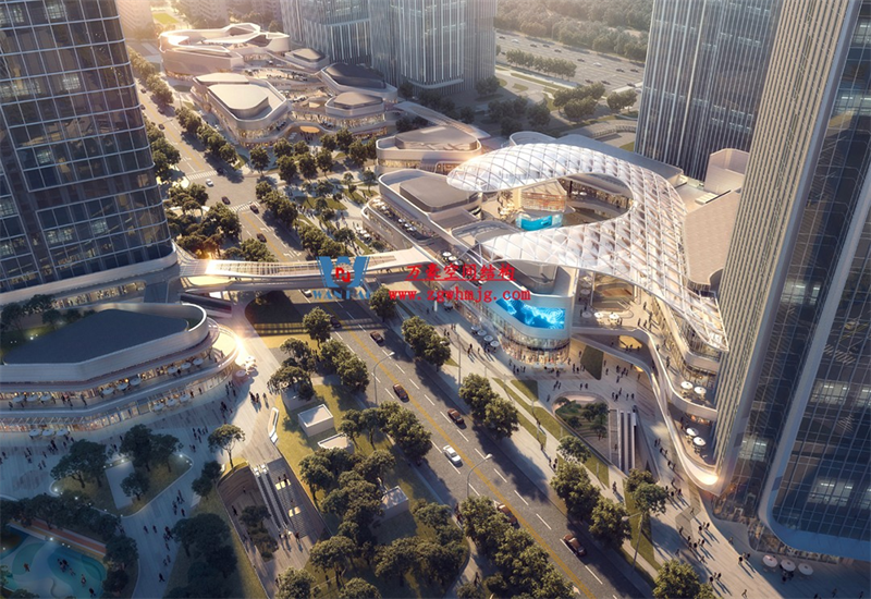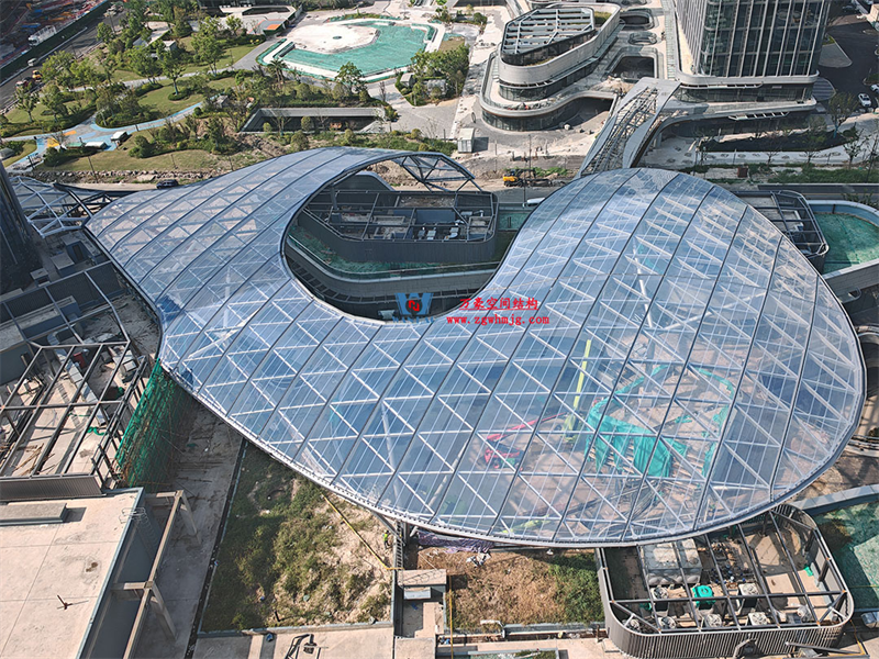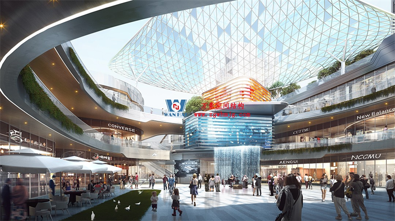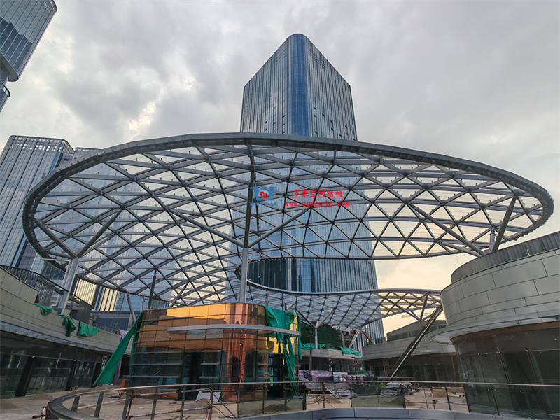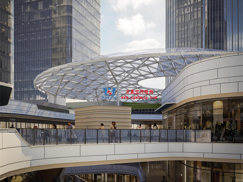 紹興華發金融活力城ETFE膜結構商業天幕工程位于浙江省紹興市,該項目ETFE膜結構展開面積約4100平方米。
