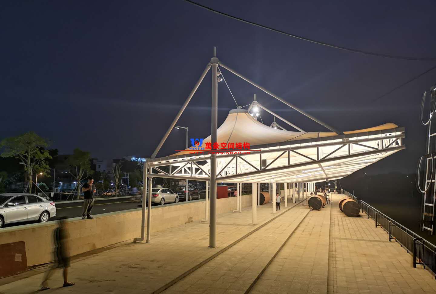 東莞東江西岸景觀膜結(jié)構(gòu)工程位于廣東省東莞市,該項目是當?shù)卣蛟斓闹攸c工程,由寧波萬豪空間結(jié)構(gòu)工程有限公司承建。