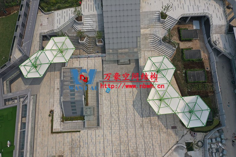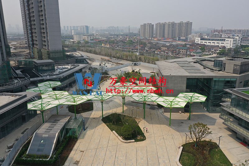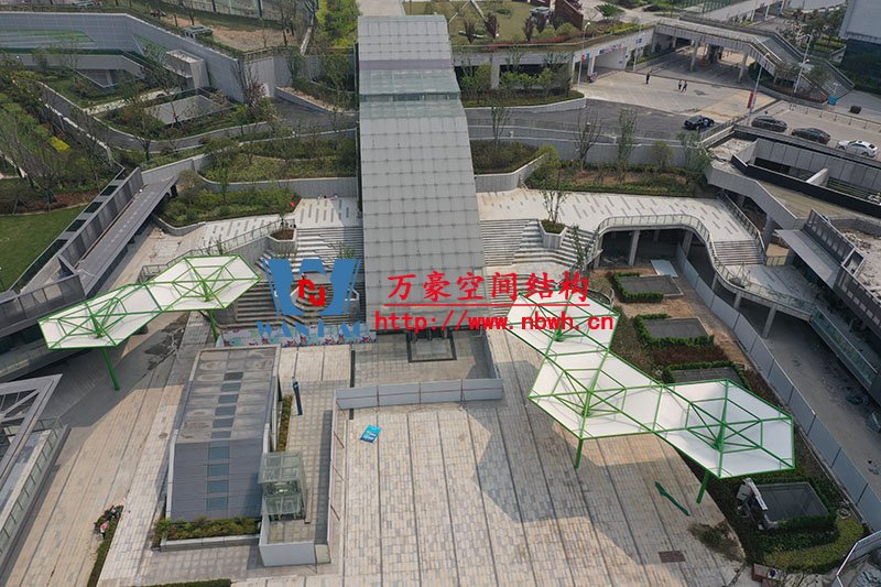 五鄉地鐵站傘狀PTFE膜結構項目位于浙江省寧波市楊柳郡,項目由19座倒傘膜結構組成,倒傘寓意盛開的牽?;āT擁椖磕げ氖褂眠M口PTFE膜材,膜結構展開面積5000平米,用鋼量100噸,由寧波萬豪空間結構工程有限公司承建。