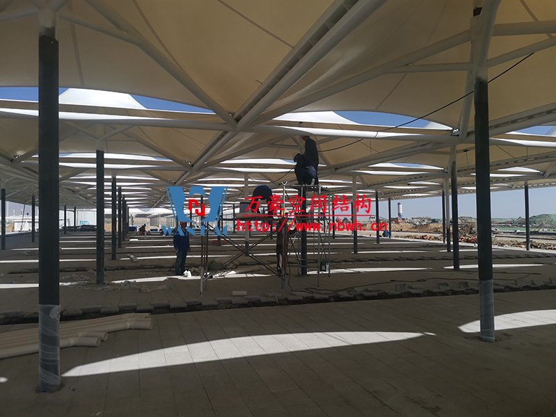 烏蘭縣茶卡景區旅游扶貧基礎設施項目(二期)膜結構候車長廊工程位于青海省海西蒙古族藏族自治州烏蘭縣茶卡景區,工程用鋼量200噸,膜結構展開面積6000平米。
