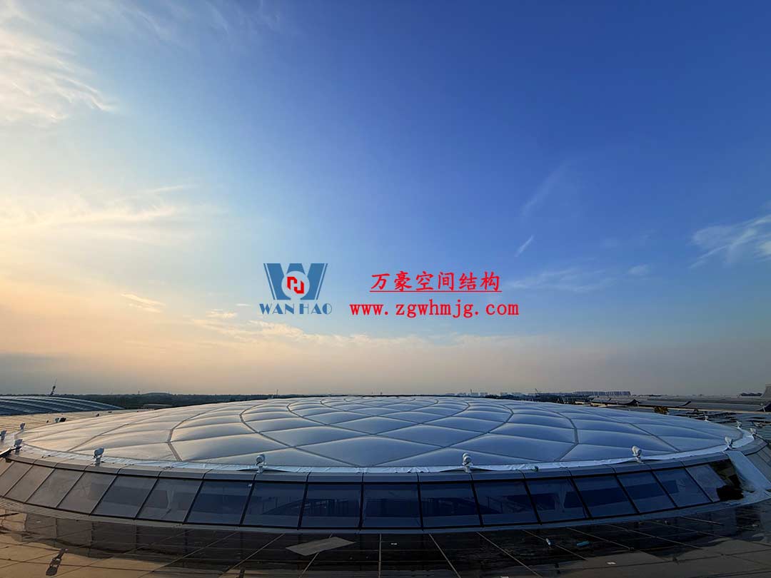 鄭州中原高鐵港數字展貿城ETFE膜結構+PTFE膜結構工程 ?中國民用航空寧波空中交通管理站膜結構車棚建造項目 蘇州人行天橋PTFE膜結構