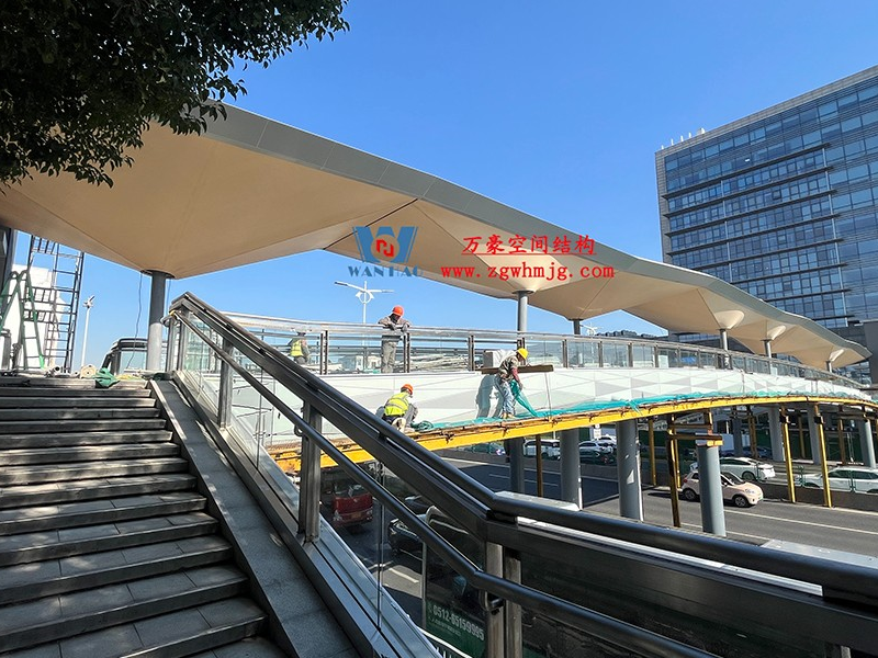 蘇州東環路人行天橋ptfe膜結構改造工程位于江蘇省蘇州市蘇州工業園內,該項目PTFE膜結構展開面積2000平米。