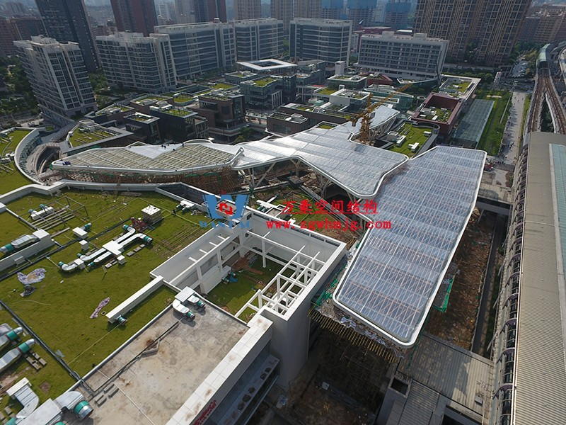 深圳龍華地鐵站ETFE天幕項目由我公司負責設計及承建,項目由4個出入口單體組成,ETFE展開面積9000平米,二次鋼結構120噸,結構落柱采用目前最流行的樹形節點支撐,在結構安全的同時更具層次感。同時該項目也完美突出了ETFE膜材高透光、高自潔性及耐高溫的優點。
