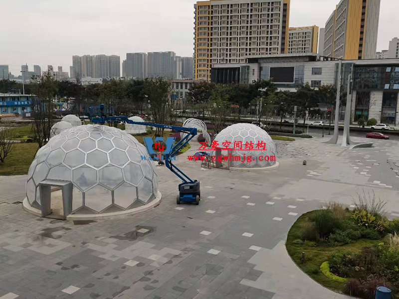 無線創智城市功能空間業態優化五星集市etfe膜結構工程位于四川省成都市,由寧波萬豪空間結構工程有限公司承建。該項目用鋼量27噸,ETFE膜展開面積510平方米。
