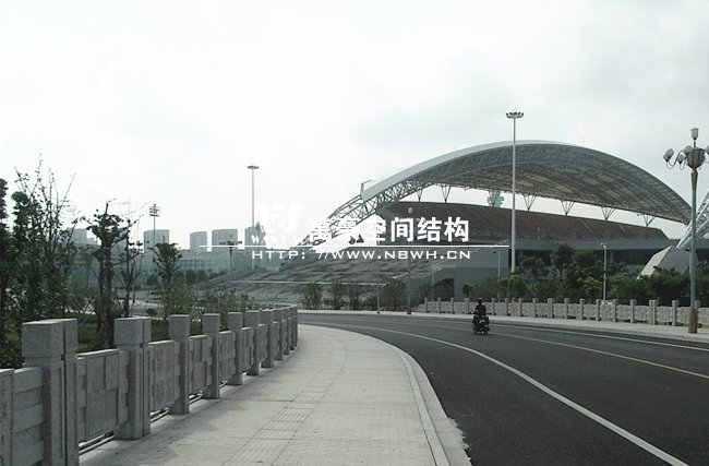 嘉興體育館位于嘉興市中環(huán)南路南側,昌盛路西側,總建筑面積約4.81公頃,其中膜結構看臺建筑總面積約12580平方米,看臺總體結構為骨架與拉索混合支撐式膜結構。