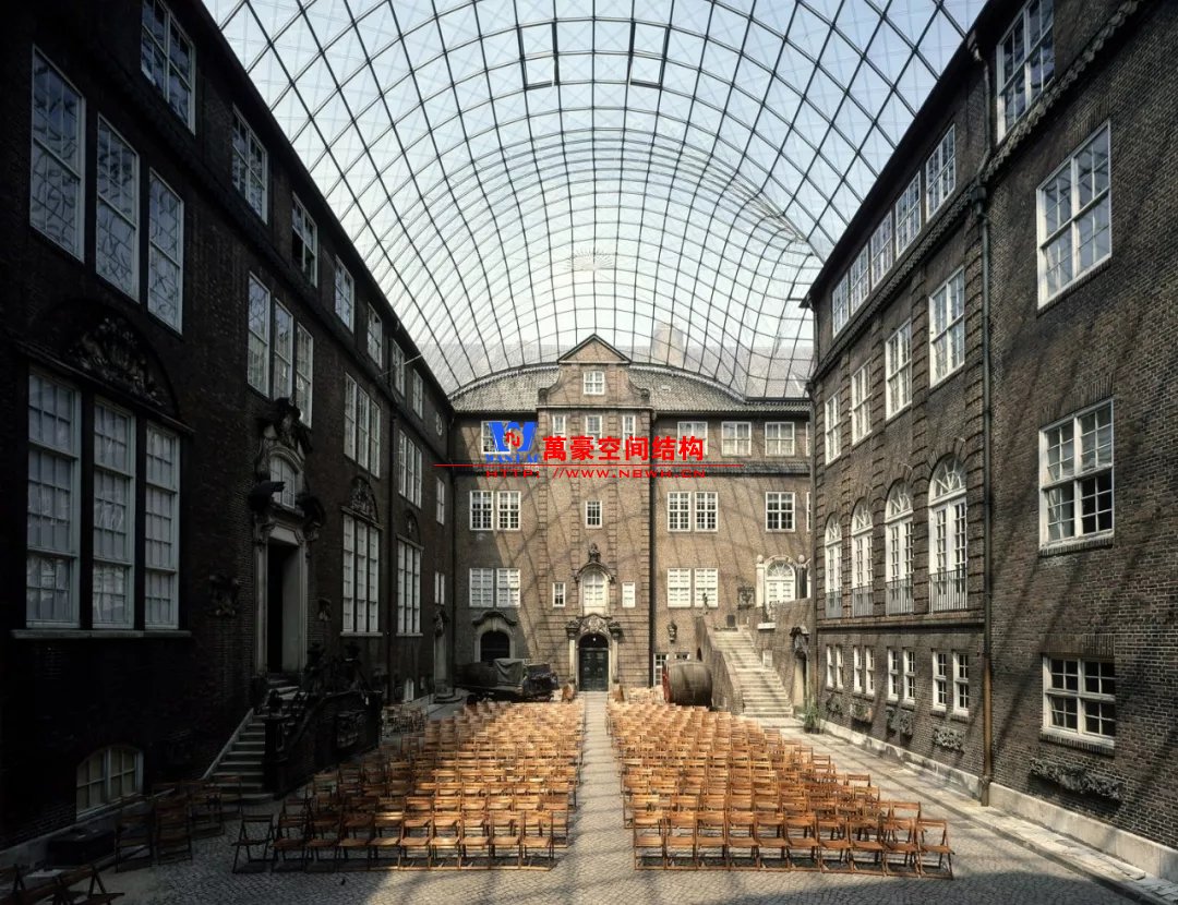 ▲Steel gridshell over the courtyard of theNational Maritime Museum, Amsterdam, 2011