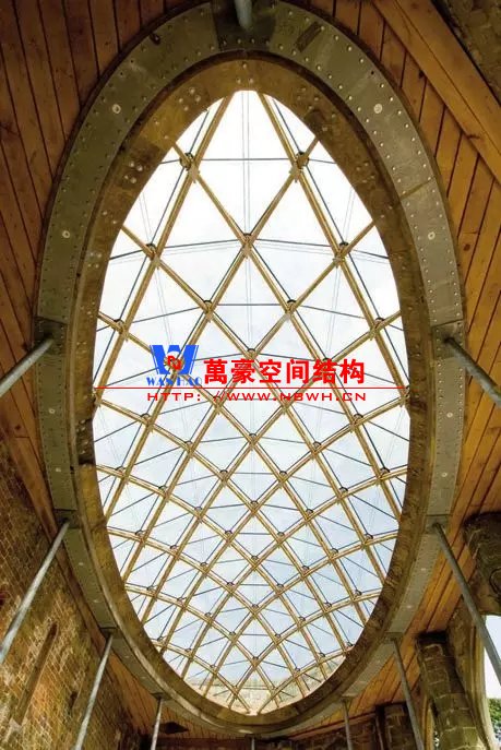 這是一個古老的鑄鐵網殼,建于19世紀后期。可以看出,這個網殼沒有斜桿,它是利用桿件的抗彎能力來抵抗平面的扭轉。