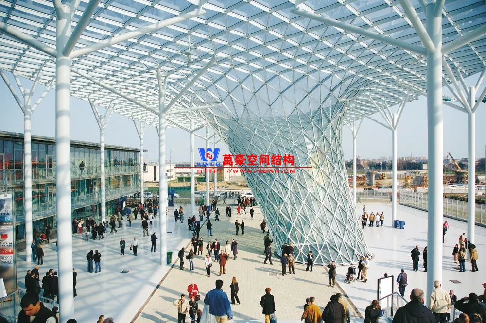 裙房之間的天幕為樹形柱支承