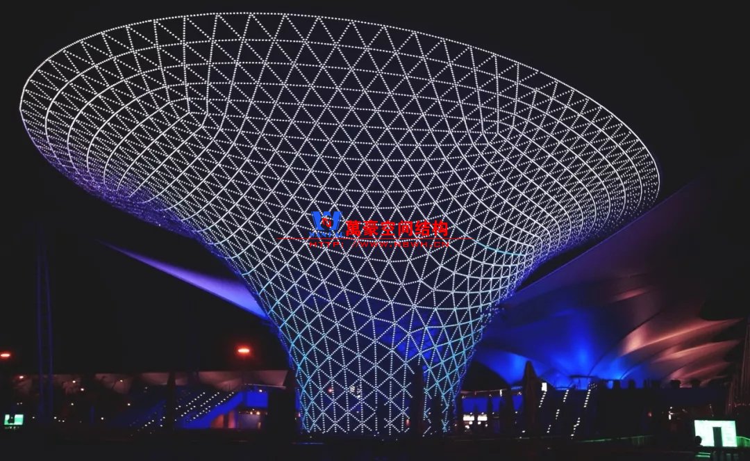 樹形柱支承+自由曲面+四邊形網(wǎng)格+拉索平衡