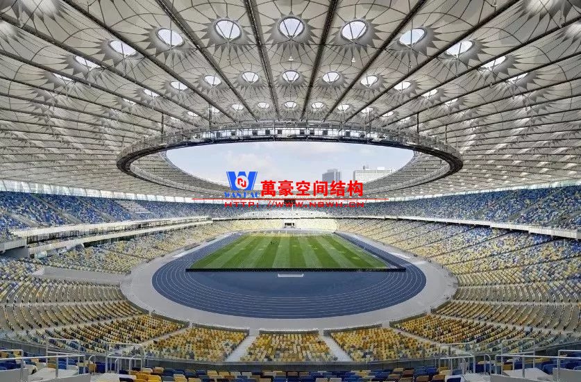 基輔國家奧林匹克體育場保留了大部分建于1968年的的原混凝土看臺(tái)結(jié)構(gòu),屋蓋結(jié)構(gòu)則通過設(shè)置在看臺(tái)結(jié)構(gòu)外圍的鋼結(jié)構(gòu)立柱進(jìn)行支撐,這樣避免了將屋蓋結(jié)構(gòu)的自重和承受的外力直接作用到原混凝土結(jié)構(gòu)及其下部基礎(chǔ)上去。
