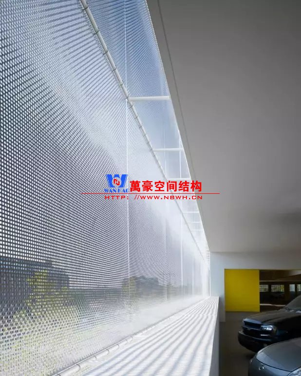 夏天,網(wǎng)格會過濾太陽光線,產生陰影降低室內的溫度;冬天,它的可滲透性允許太陽射入,降低了保溫的成本。這就使得我們在設計和選擇金屬網(wǎng)格的開口和紋理時,需要考慮不同季節(jié)的自然可變條件。