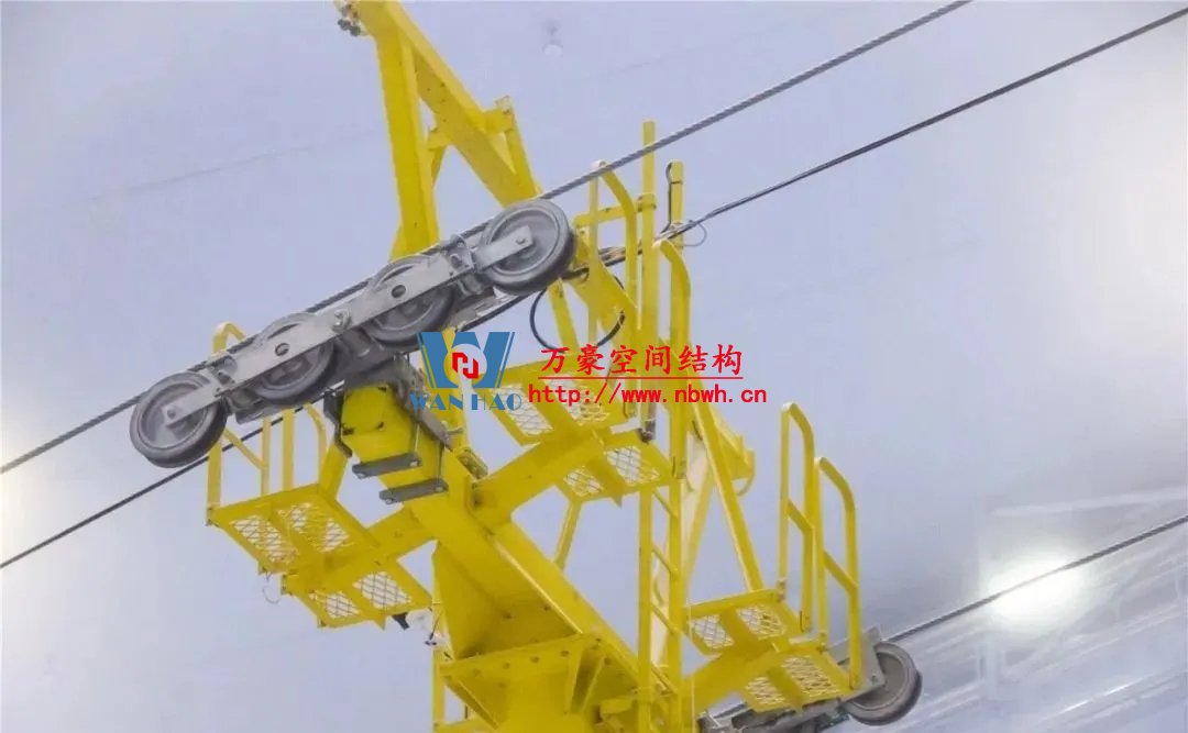 水雪綜合體高中低三區(qū)屋蓋,需要采用不同的安裝方式。低區(qū)屋蓋直接在地面拼裝,然后再吊裝就位;中區(qū)屋蓋需要采用原位拼裝+整體累計提升的方式;高區(qū)屋蓋則采用累積滑移+局部提升的方式,沿滑雪道布置兩條大滑梯,地面拼裝后再將鋼材部件順著滑梯滑上去,到達(dá)固定位置時對接安裝好完成。