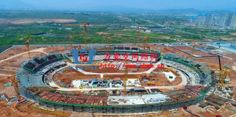 經過緊鑼密鼓的施工,其鋼結構屋蓋罩棚完成合攏,接下來將正式進入膜結構施工階段。