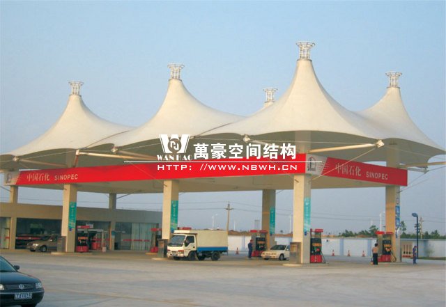 加油站膜結(jié)構(gòu),一般是指安裝在加油站的膜結(jié)構(gòu)頂棚。膜結(jié)構(gòu)頂棚因其自重輕,具有良好的受力特點(diǎn),所以成為大跨度空間結(jié)構(gòu)的主要形式之一,加油站膜結(jié)構(gòu)也屬于其范疇。