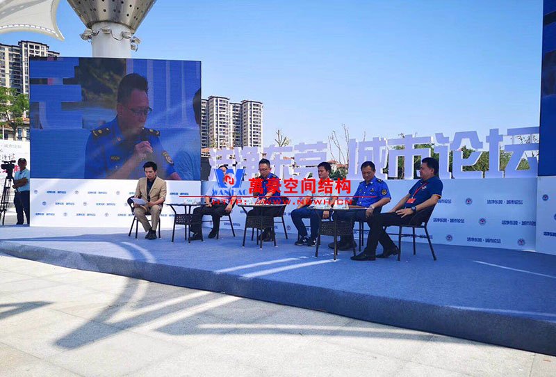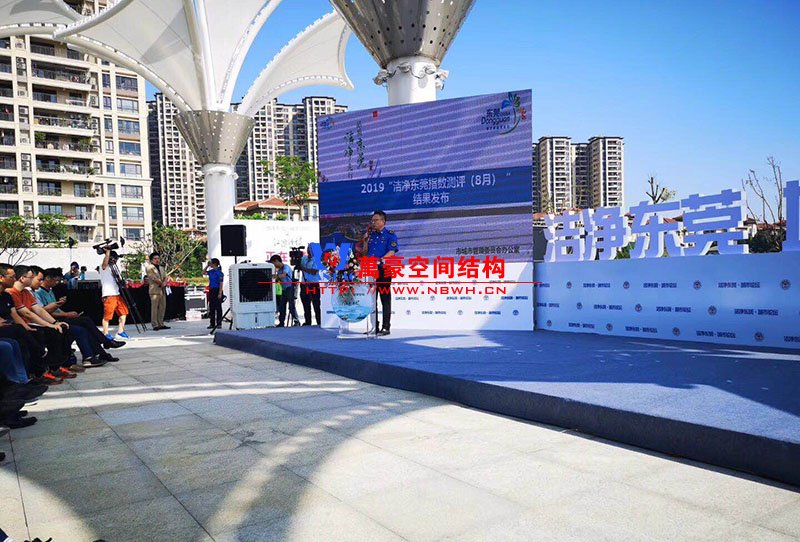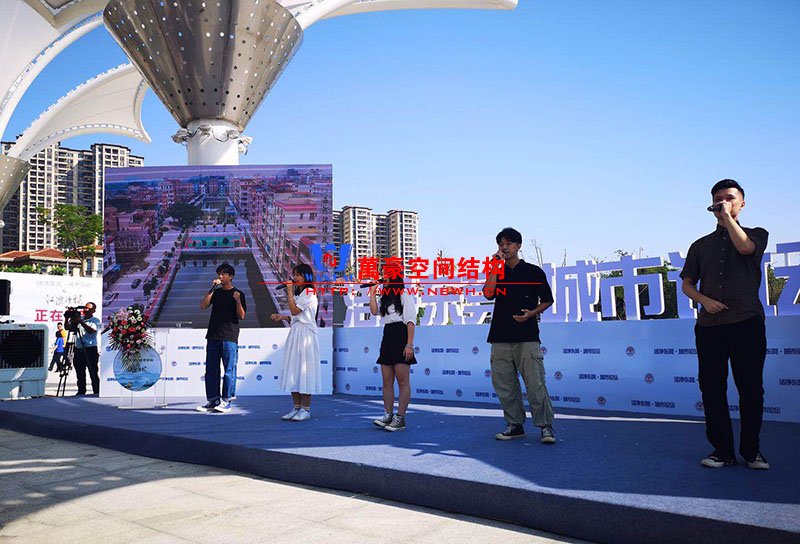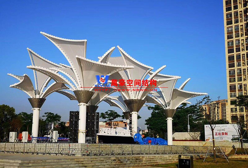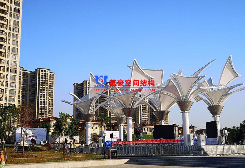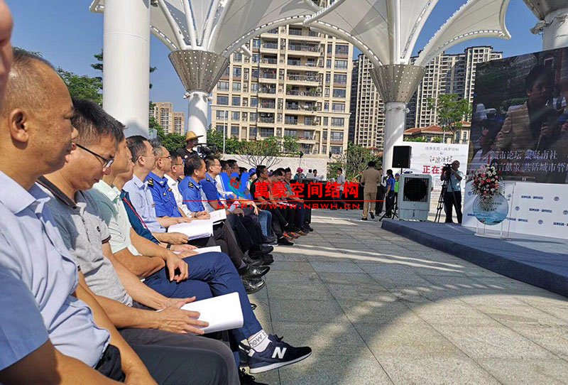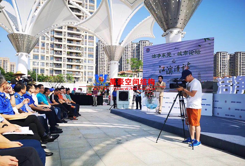東莞龍舟廣場網格覆膜景觀膜結構竣工半年,本次迎來東莞論壇在景觀膜朦朧照影下召開會議。 膜的效果非常好,看上去整潔漂亮,祝賀我司又添作品。