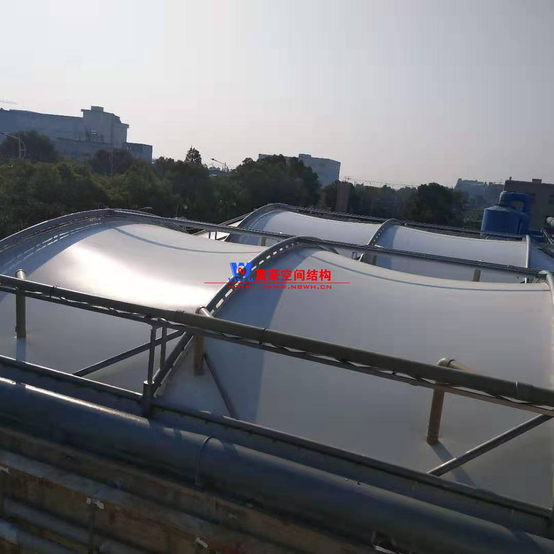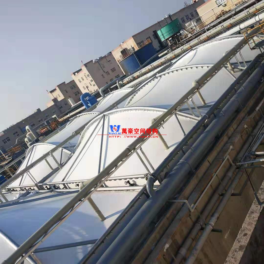 浙江東邦藥業有限公司污水池(好氧池)加蓋密閉膜結構工程位于浙江省臺州市臨海市東邦藥業有限公司內,此工程用鋼量50噸,膜結構展開面積2500平米,由寧波萬豪空間結構工程有限公司承建。 目前該工程已完美竣工,大家可以欣賞一下它的風采。?