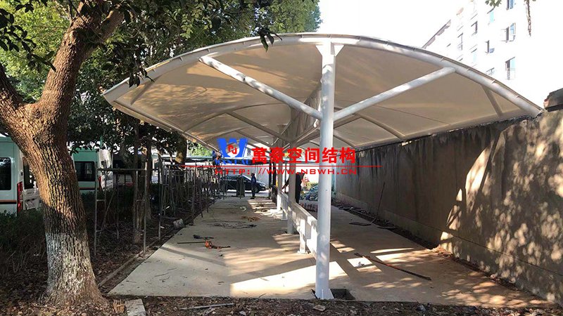 寧波市望春監獄非機動車膜結構車棚項目膜結構已完成并經初步驗收