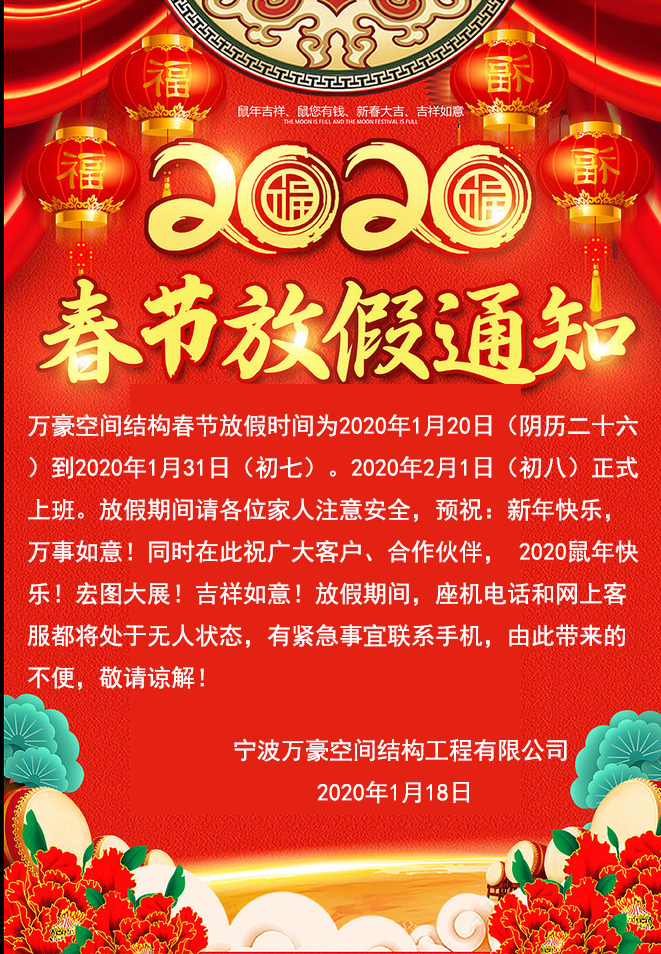 2020春節放假通知