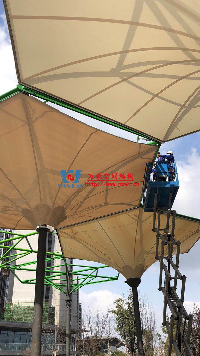 該項目膜材使用進口PTFE膜材,膜結(jié)構(gòu)展開面積5000平米,用鋼量100噸,由寧波萬豪空間結(jié)構(gòu)工程有限公司承建。