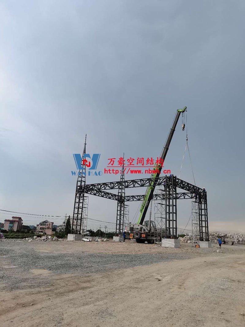 紹興西高速收費站頂棚工程用鋼量80噸,由寧波萬豪空間結(jié)構(gòu)工程有限公司加工和安裝。