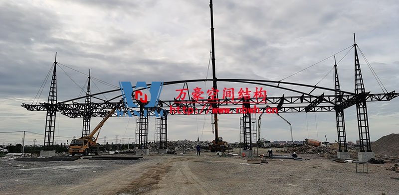 紹興西高速收費站頂棚工程用鋼量80噸,由寧波萬豪空間結構工程有限公司加工和安裝。 目前,項目鋼結構安裝完成。 期待整個工程的完工,來領略它別致的風采。