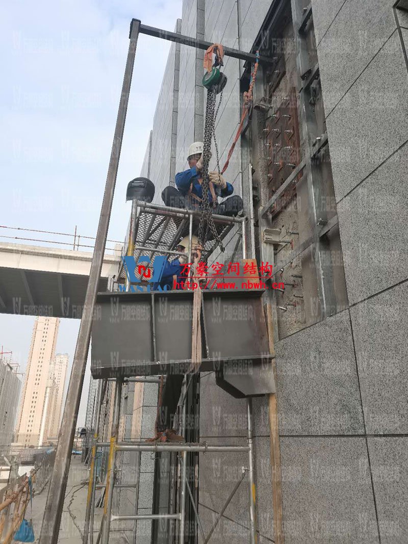 新泰卓越·財富廣場膜結構項目位于山東省泰安市新泰市,此工程由寧波萬豪空間結構工程有限公司承建。 目前預埋件施工中,牛腿安裝7個,鉆孔施工完成。 期待整個工程的完工,來領略它別致的風采。