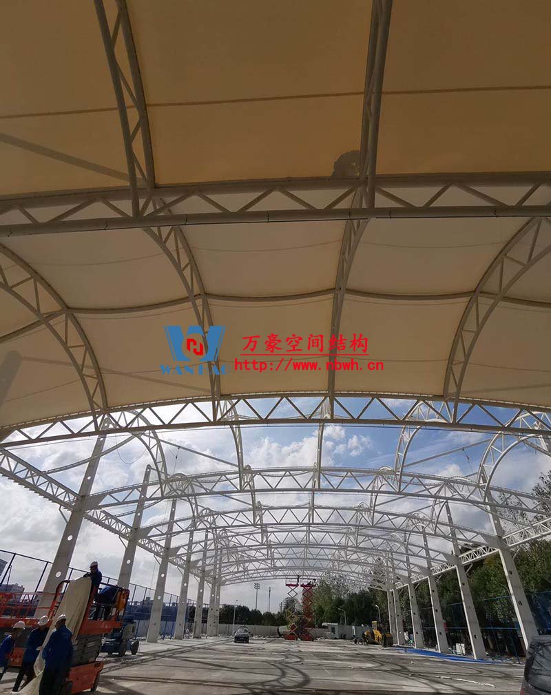 目前鋼結(jié)構(gòu)安裝完成,膜結(jié)構(gòu)正在安裝中。