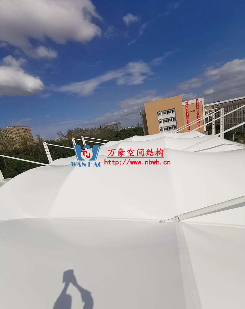 浙江紡織服裝職業(yè)技術(shù)學(xué)院東西校區(qū)運(yùn)動(dòng)場(chǎng)膜結(jié)構(gòu)項(xiàng)目位于浙江省寧波市,膜結(jié)構(gòu)展開(kāi)面積6000平米,由寧波萬(wàn)豪空間結(jié)構(gòu)工程有限公司承建。