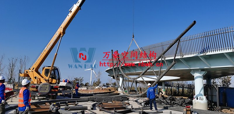 威海經(jīng)貿交流中心工程-大貝殼項目位于山東威海東部濱海新城,膜結構展開面積3000平米,用鋼量300噸,由寧波萬豪空間結構工程有限公司承建。 項目造型為貝殼造型,結構復雜,施工難度非常大,幾乎每一根構件都需獨立放樣定位。膜結構則是采用ETFE與PTFE多種膜材組合的方式,更大限度的展現(xiàn)了膜結構在商業(yè)領域的應用。 目前,項目進入鋼結構安裝階段。 期待整個工程的完工,來領略它別致的風采。