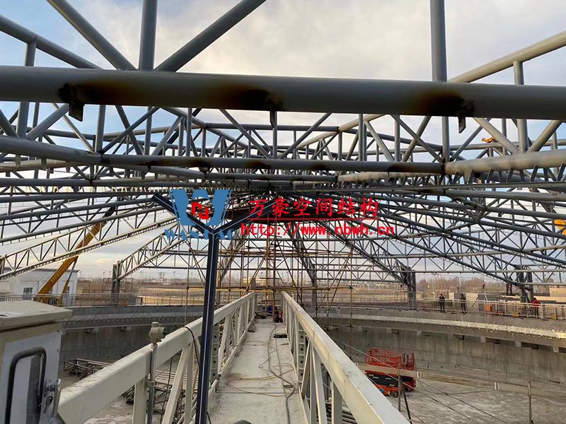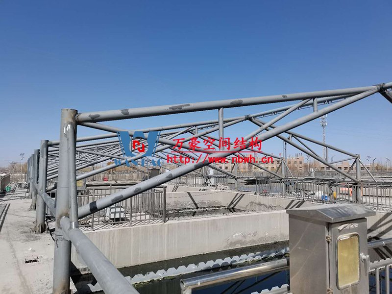 該工程主要建設(shè)格爾木工業(yè)園昆侖工業(yè)區(qū)工業(yè)污水處理廠首期2.5萬立方米/天工程二沉池、水解酸化池和預(yù)沉池池體保溫膜結(jié)構(gòu)安裝。項(xiàng)目用鋼量230噸,膜結(jié)構(gòu)展開面積5000平米。