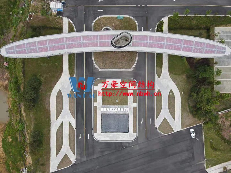 南充電影學(xué)院膜結(jié)構(gòu)項目揚帆起航的建筑師設(shè)計理念在本項目中完美呈現(xiàn),雙曲面彎弧結(jié)構(gòu)造型猶如一片小舟屹立在學(xué)院門口,寓意著萬千學(xué)子一帆風(fēng)順學(xué)業(yè)有成。