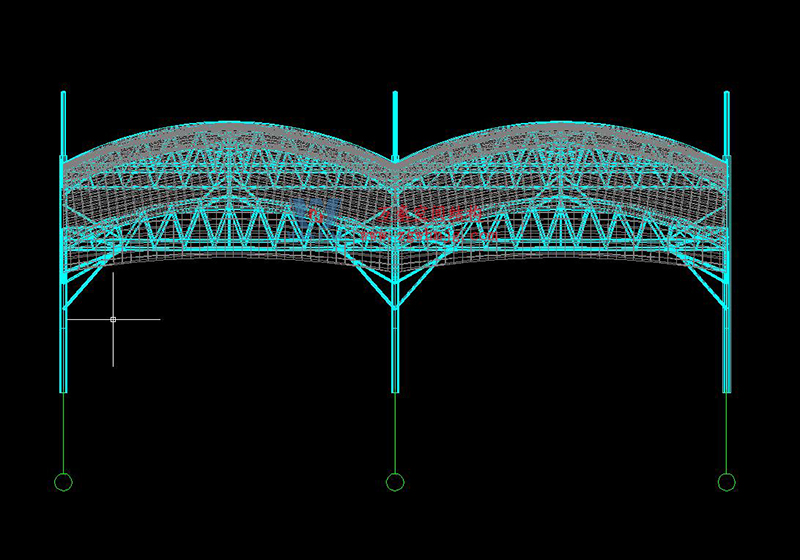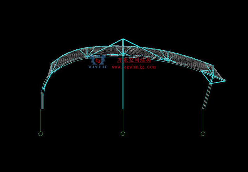 球場采用膜結(jié)構(gòu)形式,可以充分發(fā)揮建筑師的想象力,又體現(xiàn)結(jié)構(gòu)構(gòu)件清晰受力之美。作為一種柔性材料,其在建筑上的造型變化多端,是其它材料所不能比擬的,因此也造就了膜結(jié)構(gòu)多變的特性,充分體現(xiàn)出建筑形體塑造力和輕盈、飄逸的動感曲線外觀。