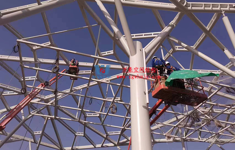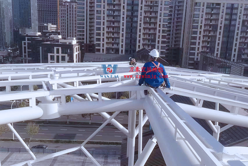 最近項目不斷傳回最新施工進展,目前鋼構主體已經(jīng)完成,油漆的涂刷、二次鋼構以及排水管道的安裝也已接近尾聲,現(xiàn)在進行最后的收尾工作。樣品膜的試裝也已完結,等待后期整體鋼構以及排水管安裝完畢,開始進行膜體的安裝。期待工程的整體完工,讓我們能夠盡早一飽眼福。