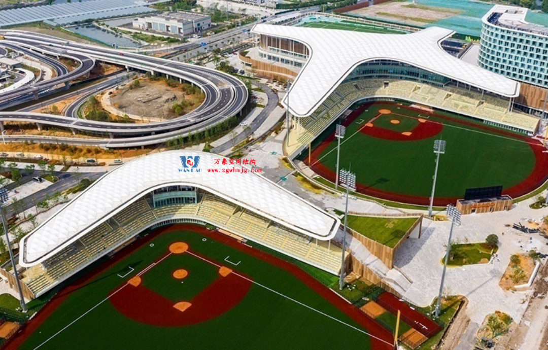 多年來(lái),萬(wàn)豪憑借其卓越的技術(shù)與嚴(yán)格的質(zhì)量把控,承建了眾多地標(biāo)性空間結(jié)構(gòu)項(xiàng)目。在無(wú)錫奧體中心,萬(wàn)豪打造的 ETFE 氣枕膜結(jié)構(gòu)建筑,以其獨(dú)特的造型與高效的空間利用,成為當(dāng)?shù)氐囊粡埩聋惷辉诤贾輥嗊\(yùn)會(huì)棒壘球體育文化中心,萬(wàn)豪運(yùn)用大型 PTFE 反吊膜結(jié)構(gòu),攻克大跨度空間難題,功能與顏值兼?zhèn)洹T趪?guó)際市場(chǎng)上,萬(wàn)豪同樣成績(jī)斐然,澳大利亞希望島網(wǎng)球中心、印尼全天候碼頭倉(cāng)庫(kù)等項(xiàng)目的順利交付,贏得了國(guó)際客戶的高度贊譽(yù)。