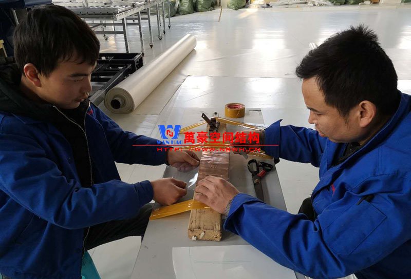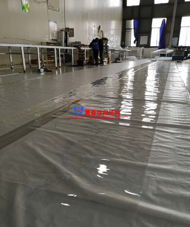 近日,萬豪接了一個ETFE膜結(jié)構(gòu)車棚加工項目,那就是廣安公交車棚項目。這個項目的鋼結(jié)構(gòu)加工以及膜結(jié)構(gòu)加工都是在萬豪工廠內(nèi)完成。