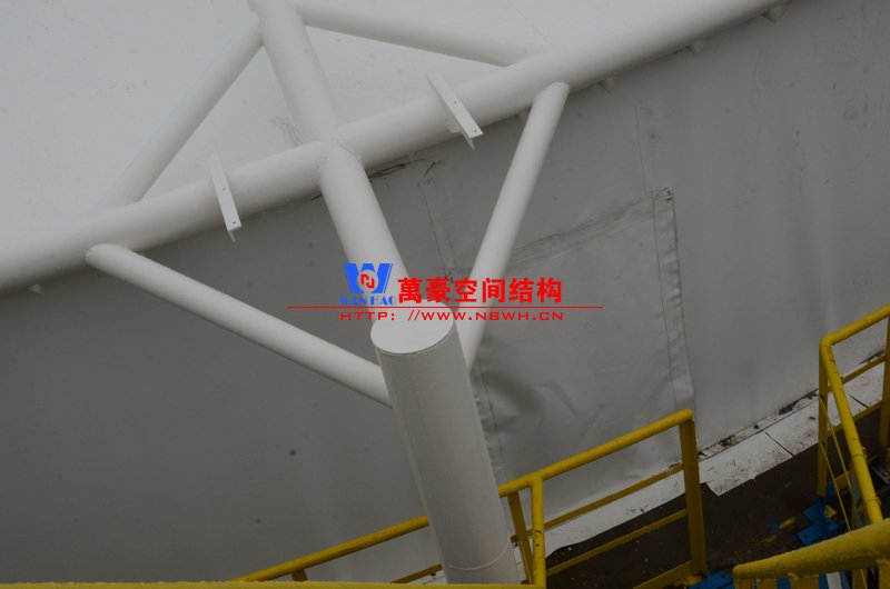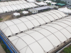 平湖衛星石化污水廠膜結構加蓋密封系統工程項目膜結構展開面積2000平米,用鋼量35噸,由寧波萬豪空間結構工程有限公司承建。